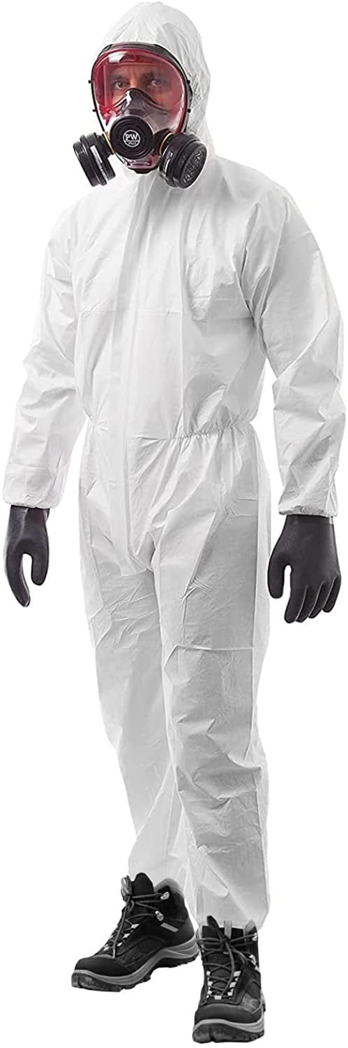Hazmat Suits Disposable Coveralls Medium Pack Of 5 White Protective Suits With Attached Hood Zipper Front 60 Gsm Microporous Paint Suit Protective Clothing Unisex Painters Suit Walmart Com